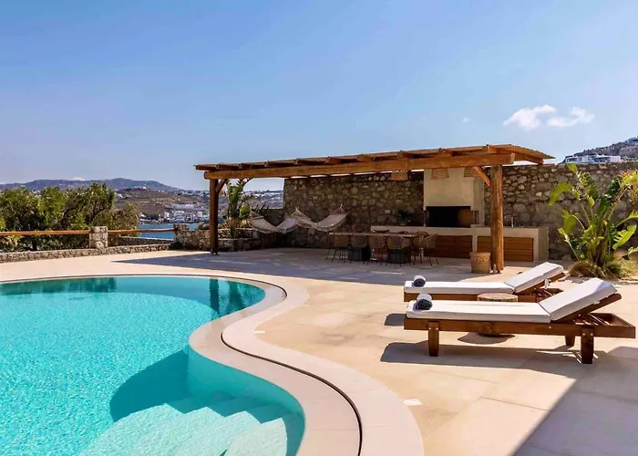 Deze 8-slaapkamer The Blue Diamond Villa ligt op circa 6 km van de Vuurtoren van Mykonos en biedt gasten de mogelijkheid om wandelen en fietsen te proberen. Deze villa heeft een zonneterras en ligt op ongeveer 3 km van het Strand van Agios Stefanos.